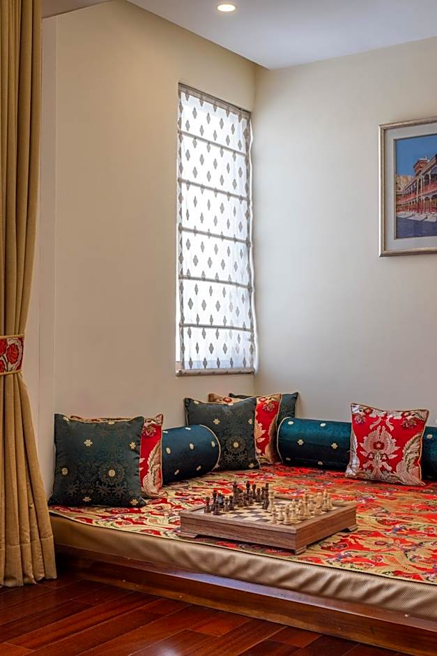 This room offers air purifiers, central air conditioning, washroom-floor heating and Italian marble with 4 fixture modern fittings stall and amenities in the bathroom. Added to this is the alluring charm of the elegant teak wood cornices, furnishings in jewel-toned brocades embossed with floral designs and geometric motifs.